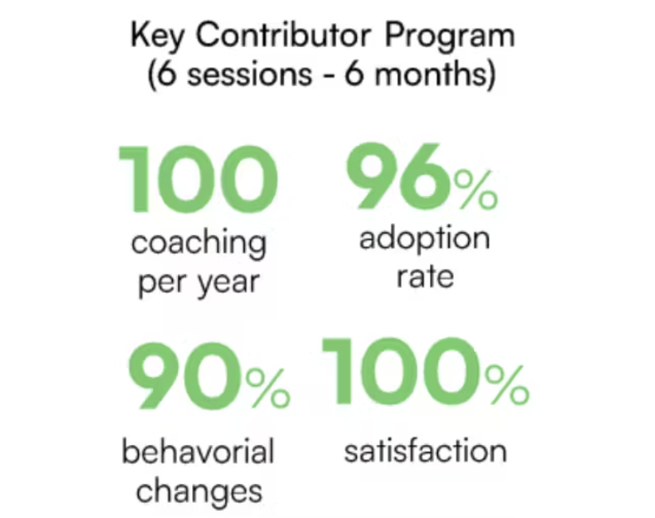 - Embedding long-term leadership strength through scalable, insight-driven coaching programs. Tailored coaching empowered leaders to grow, ensuring a sustainable leadership pipeline.
