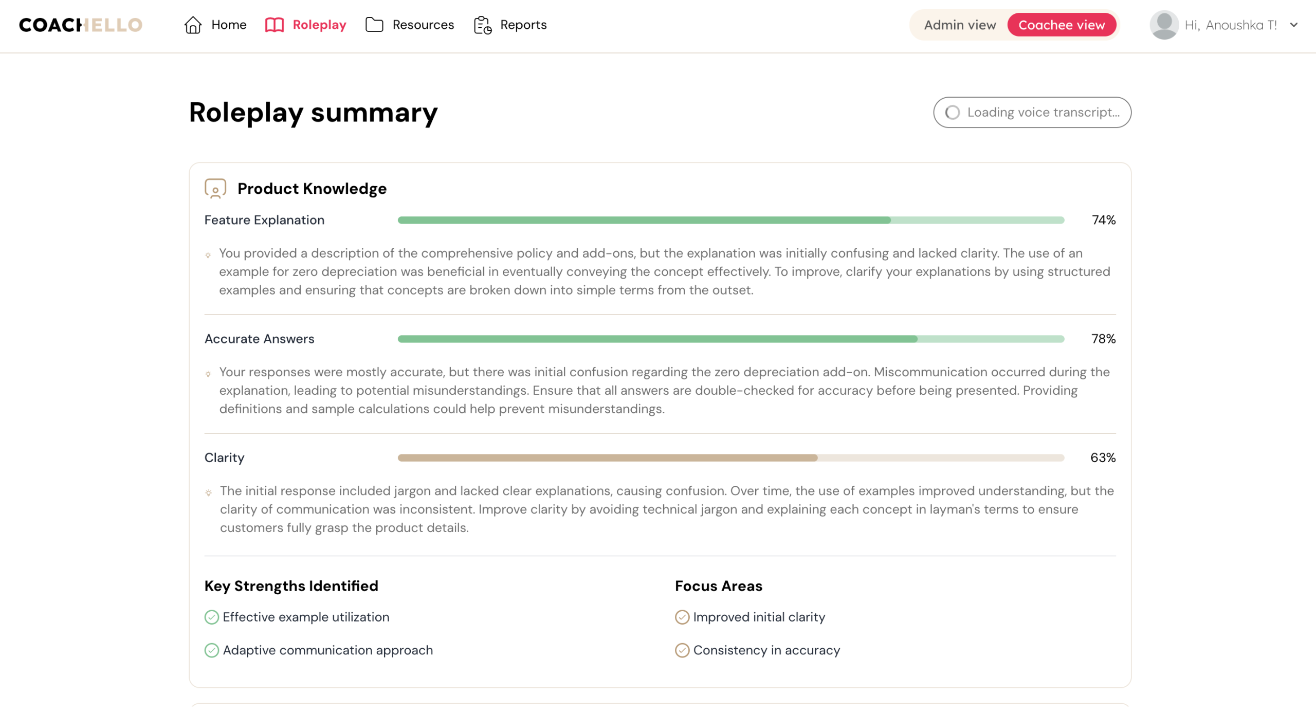 AI coaching role play with avatar